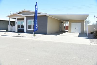 This model is the Sunset Blossom Floorplan. Home shown in pictures is for layout only. Actual home has been modified by removing 3 small dining room windows, overhead cupboards go to ceiling with cubbies, master bath is all one room and windows are two paned windows. There is no longer a small pane at the top.